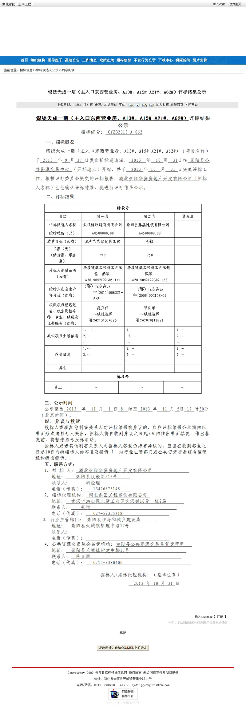 中標公示