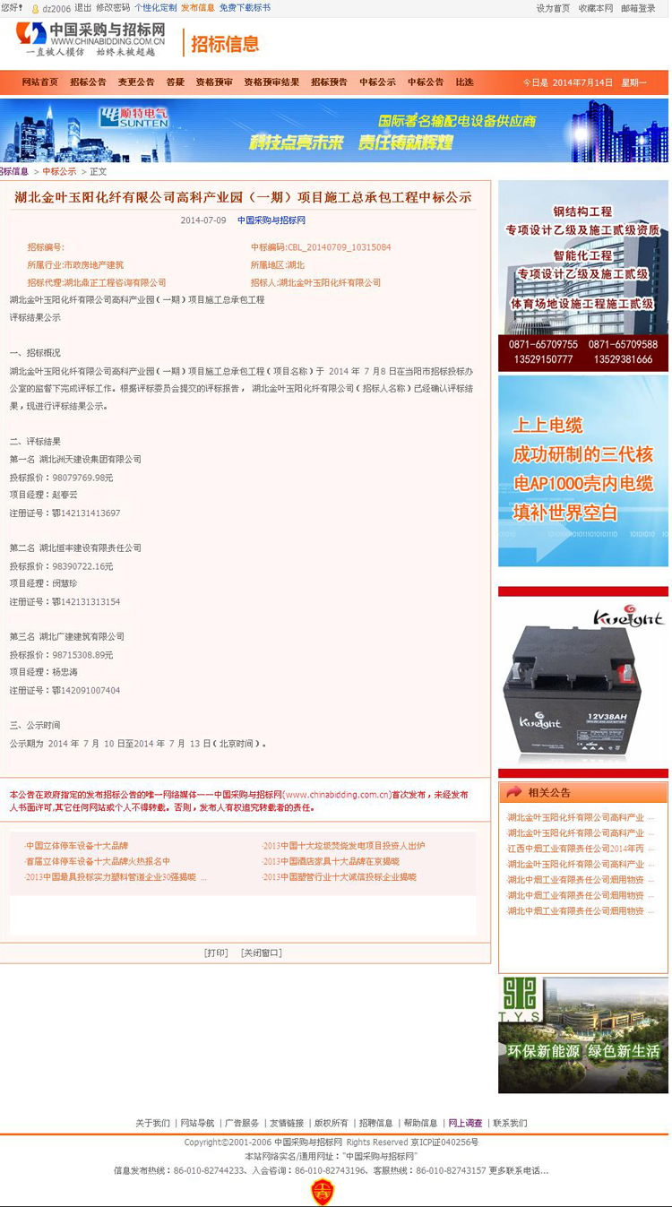 中標公示