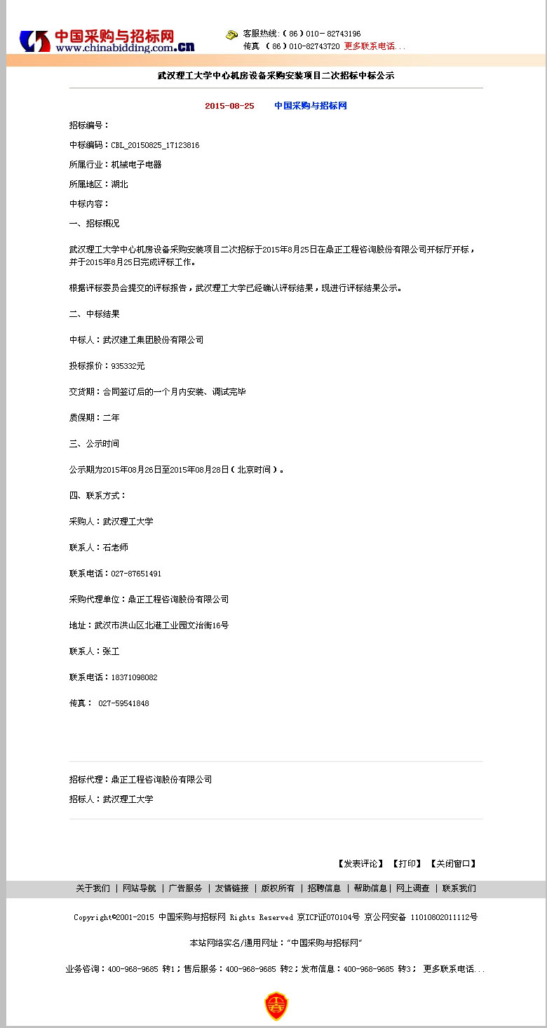中標(biāo)公告