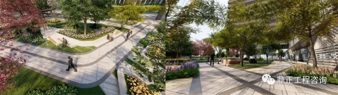 鼎正景觀設計內容:景觀園建及綠化工程,包括景觀廣場、步道、小品及園林植物設計,總設計面積近20000