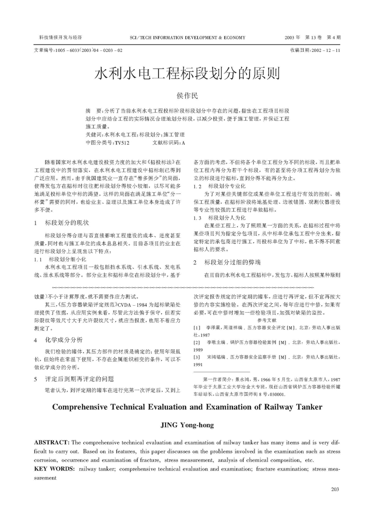 水利水電工程標段劃分的原則