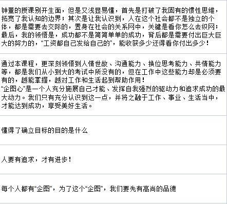 開堂的第一節課,他以《打開企圖心》為主題,以提問為主的方式,激發線上線下的學員深入思考:我們為何而奮斗?我們因何而得到?既不是秀才(編者注:此語境下的含義為生活優渥者)也不是落榜者(編者注:此語境下的含義為因失敗而發憤圖強者)的我們又當以什么作為自身前進的動力?……