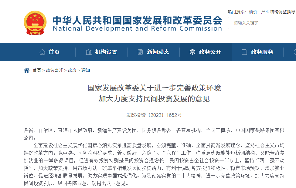 國(guó)家發(fā)展改革委關(guān)于進(jìn)一步完善政策環(huán)境加大力度支持民間投資發(fā)展的意見(jiàn)
