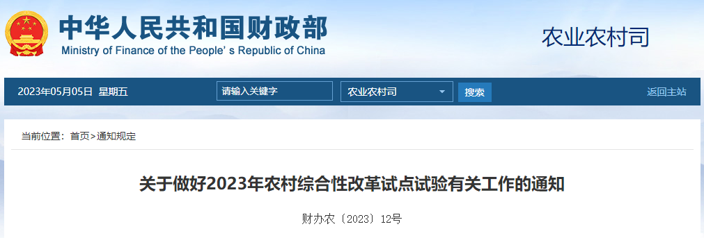 財政部關于做好2023年農村綜合性改革試點試驗有關工作的通知