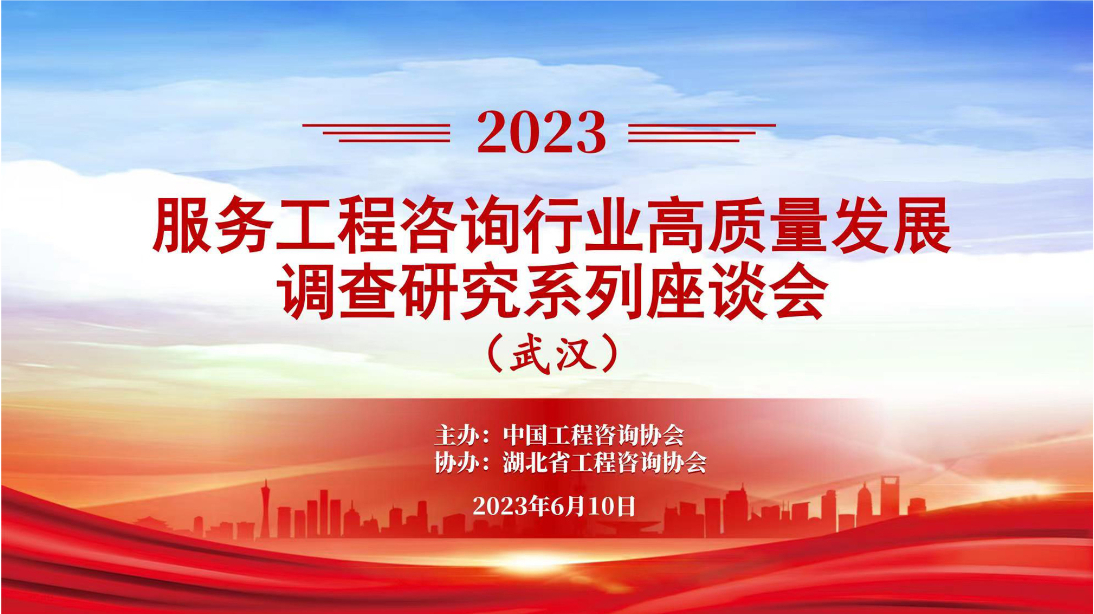 6月10日,我司王雁然董事長出席由中國工程咨詢協會(以下簡稱中咨協會)主辦,湖北省工程咨詢協會協辦“2023年服務工程咨詢行業高質量發展調查研究座談會”并做交流發言。會議由中咨協會會長肖鳳桐主持,來自湖北、湖南、河南三省13家工程咨詢企業代表近30人參加了此次座談會。