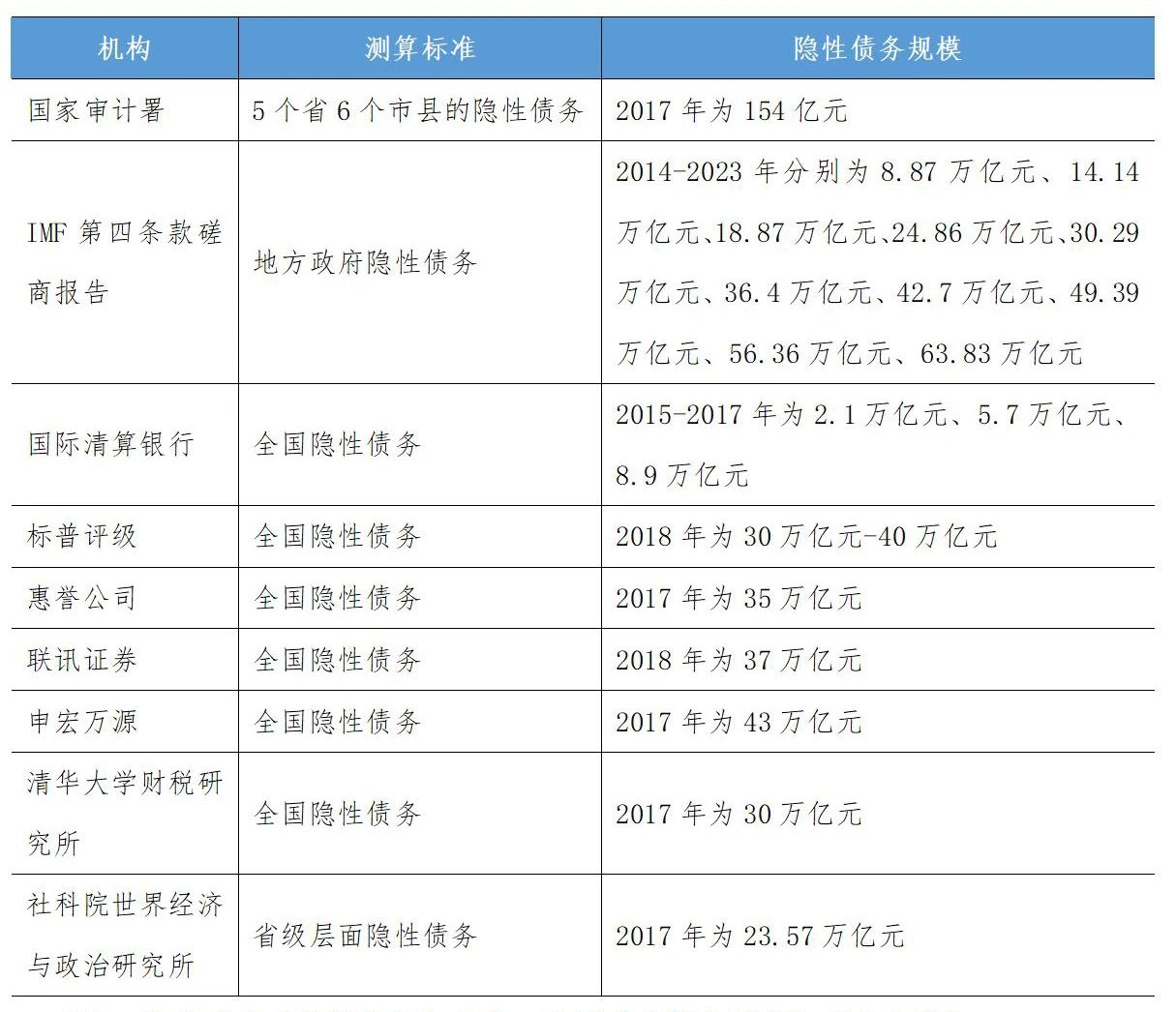 表1-1  關于隱性債務規模的測算