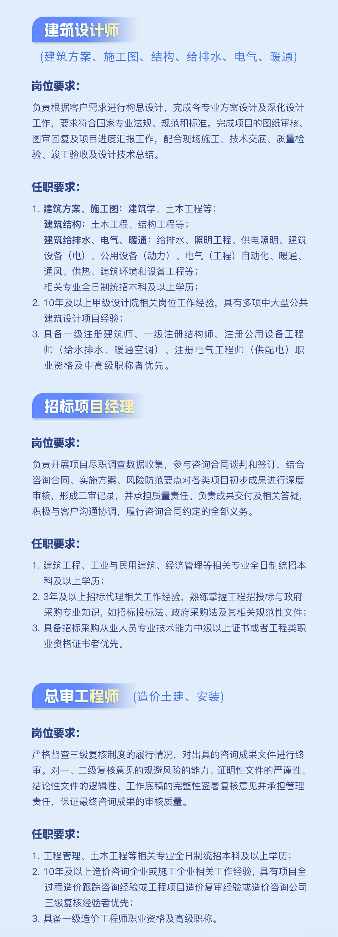 公司下設(shè)工程咨詢事業(yè)部、招標(biāo)代理事業(yè)部、工程造價咨詢事業(yè)部、規(guī)劃設(shè)計事業(yè)部等機構(gòu)...