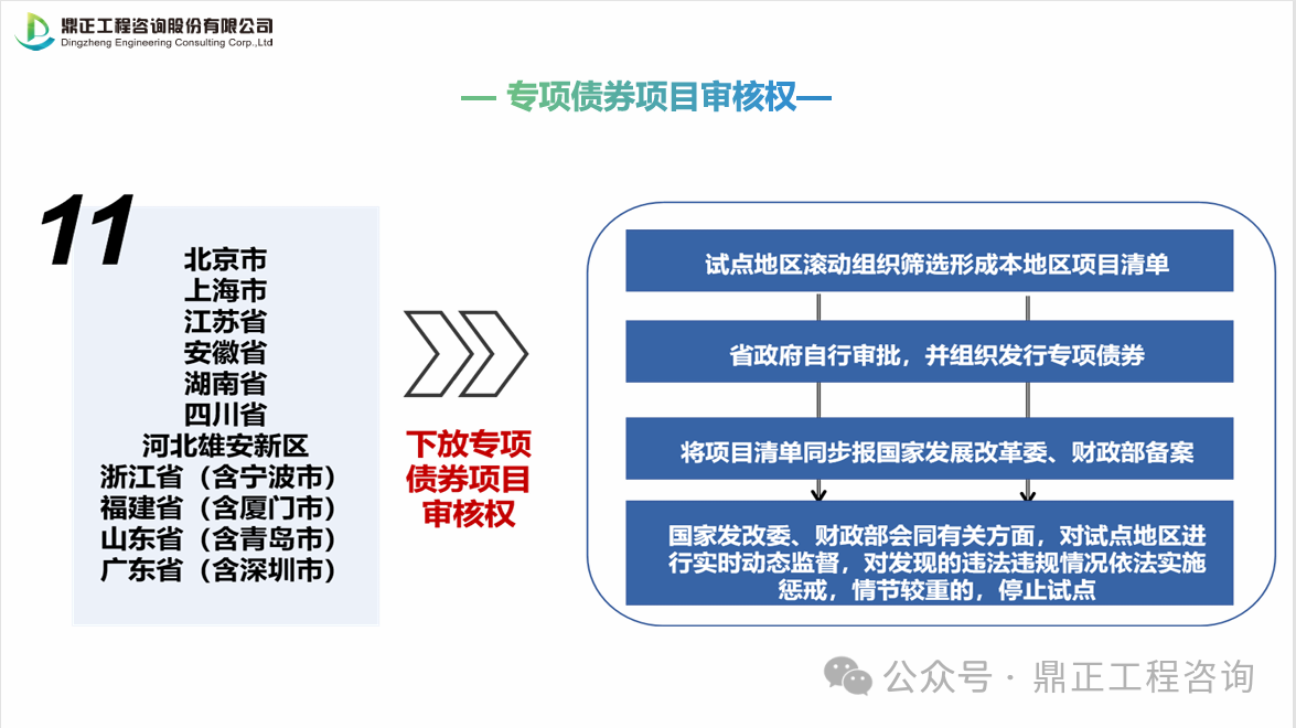 地方政府專項債券項目“自審自發(fā)”試點地區(qū)名單:北京市、上海市、江蘇省、浙江省(含寧波市)、安徽省、福建?。ê瑥B門市)、山東省(含青島市)、湖南省、廣東省(含深圳市)、四川省、河北雄安新區(qū)等11個省市。