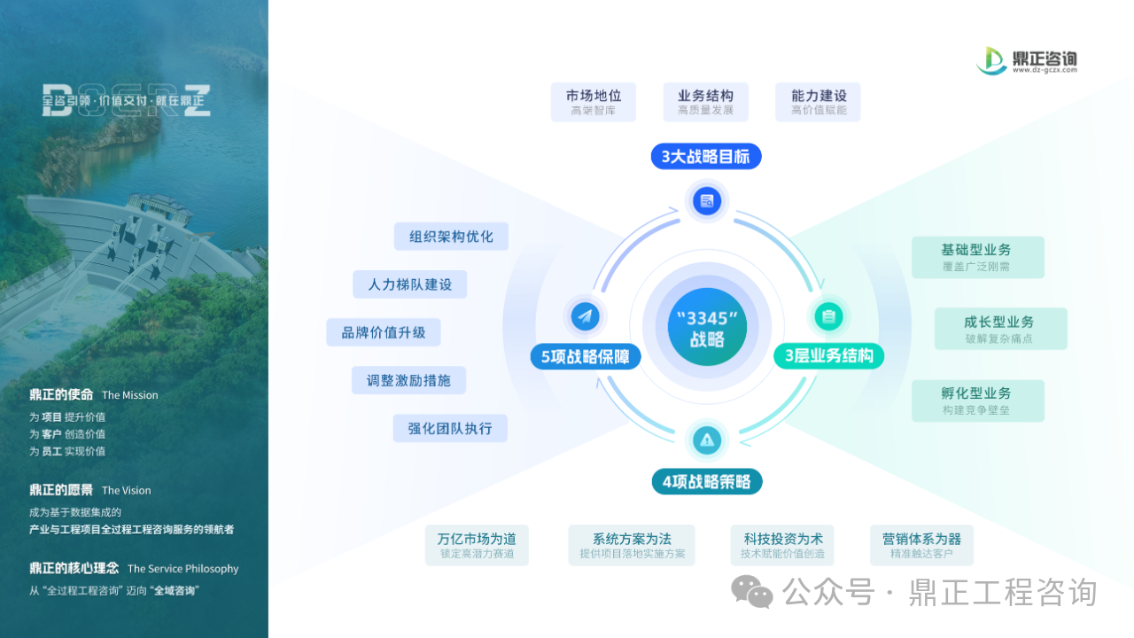 彭總指出,歷經(jīng)行業(yè)深度調(diào)整,鼎正已站在全新的發(fā)展起點。他強調(diào),破局的關(guān)鍵在于轉(zhuǎn)變思維模式,以全新姿態(tài)擁抱變革,探索新業(yè)務、構(gòu)建新模式。“3345”戰(zhàn)略正是驅(qū)動這場轉(zhuǎn)型的核心引擎,通過堅定扎根縣域市場、構(gòu)筑堅實技術(shù)護城河,重塑工程咨詢行業(yè)價值標準,鼎正將邁向更成熟、更理性的發(fā)展新階段,未來的發(fā)展也會變得更穩(wěn)健。