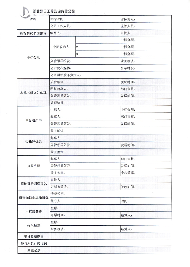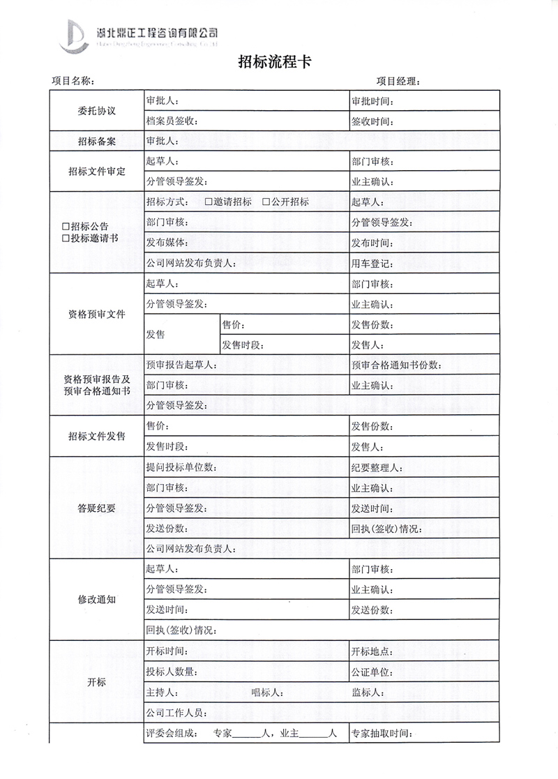 招標(biāo)業(yè)務(wù)操作流程卡